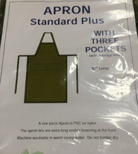A one-piece apron in PVC on Nylon, a soft flexible material which gives outstanding protection. The apron ties are extra-long enabling fastening at the front. Machine washable in warm, soapy water.